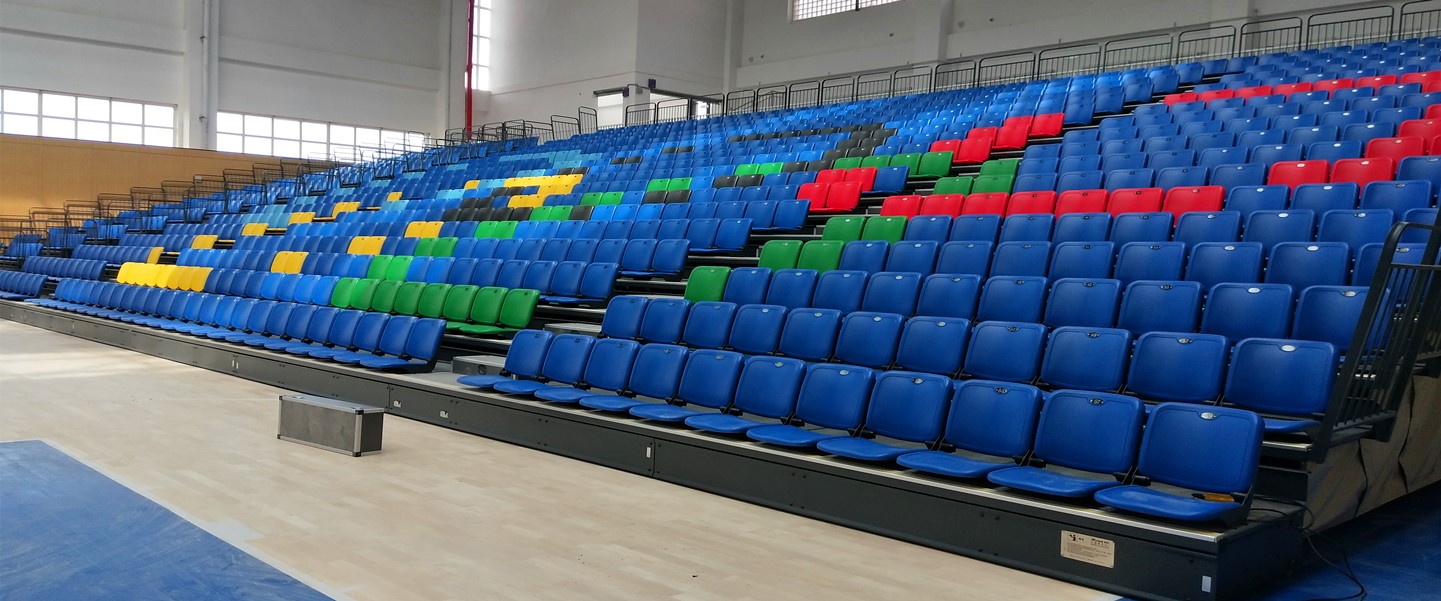 Indoor and outdoor bleacher seats, stadium electric retractable bleacher seats, manual retractable bleacher seats for schools, fixed step seats, mobile fixed seats for dance classes, plastic seats for swimming pools, hollow blow molded seats.